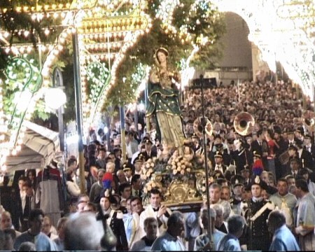 08-09-2024 Il Parroco e il Priore portano a spalla la statua della Madonna Immacolata in un tratto del corso Garibaldi