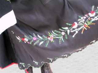 color verde scuro; poi di seta nera ricamato sul fondo a fiori di